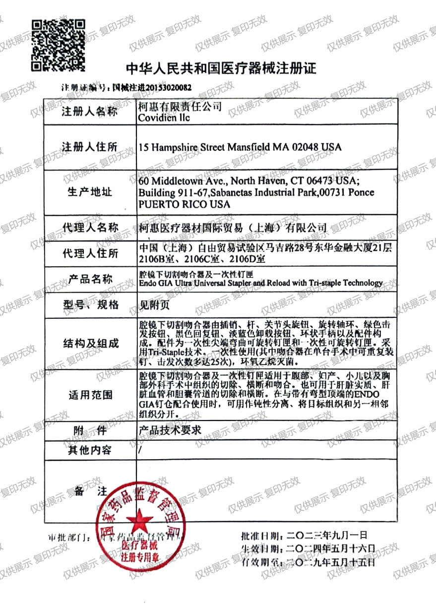 1.Covidien柯惠腔鏡下切割吻合器及一次性釘匣可能含有禁忌內(nèi)容或者注意事項(xiàng),具體詳見說明書。