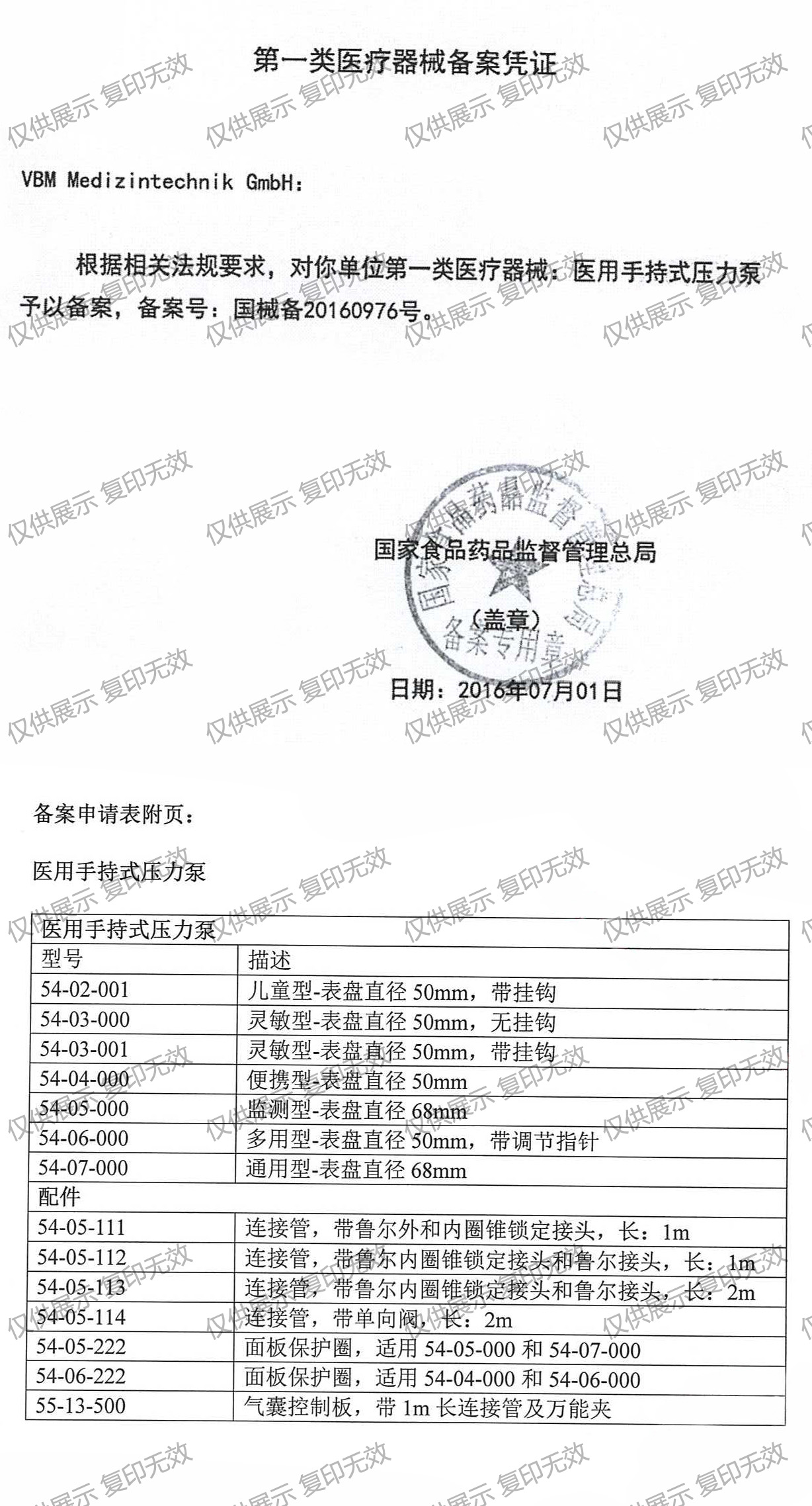 第一類醫(yī)療器械備案號:國械備20160976號